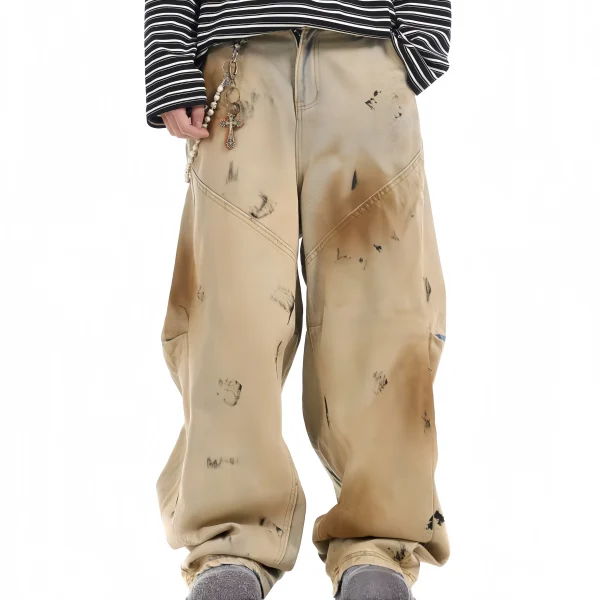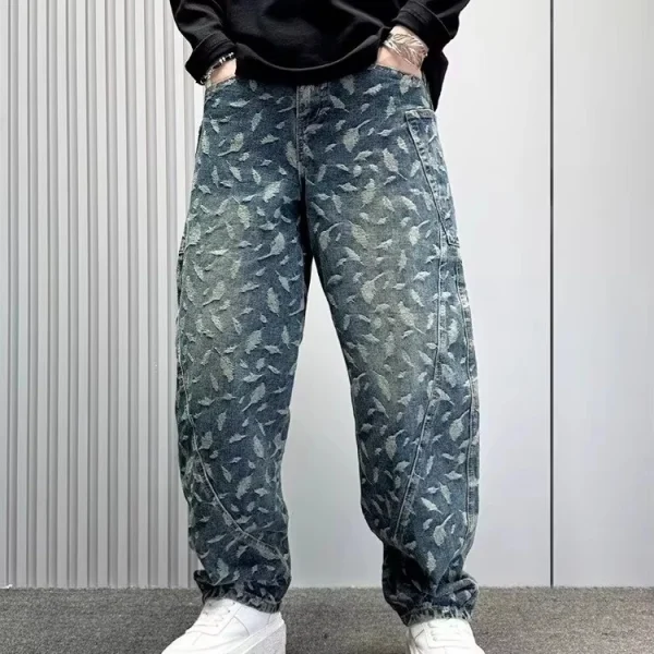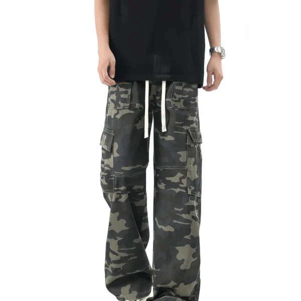 Men's Loose-Fit Camouflage Denim Jeans Straight Style Workwear Pants for All Seasons-for Wide-Leg