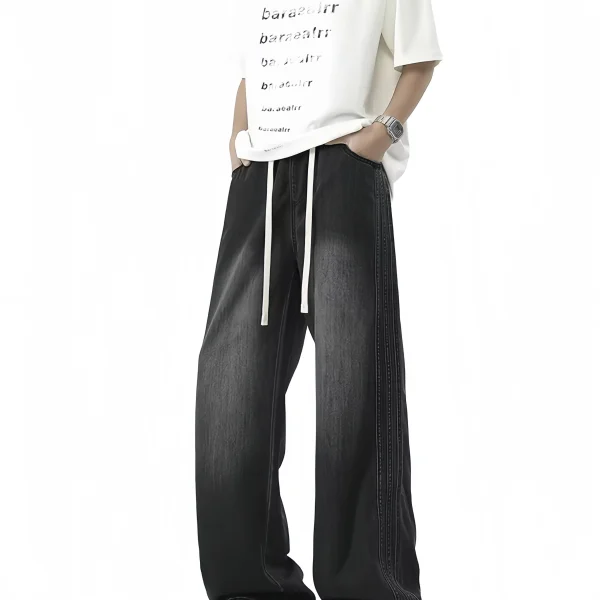Fashion Men's Jeans Loose Denim Wide Leg Straight Leg Pants with Washed Gradient Design for Men and Teenagers Men's Jeans