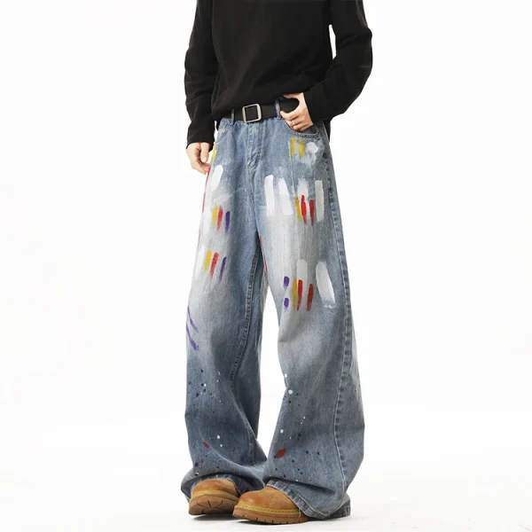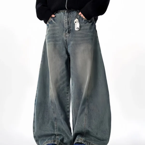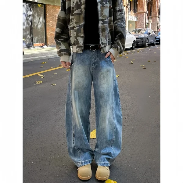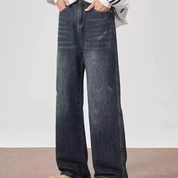 Men's Vintage Four Seasons Old Loose Wide Leg Floor Dragging Jeans New Vintage European American Fashion Straight Legs Denim