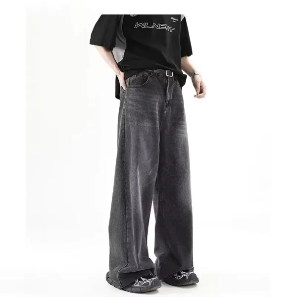 Men's Casual Denim Straight Leg Pants Washed Loose Wide Leg Jeans Men's Jeans
