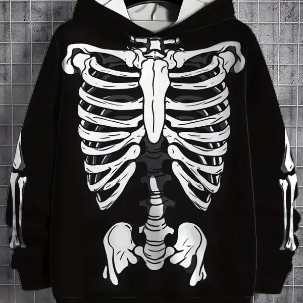 Stylish Men's Skeleton Graphic Long Sleeve Sweatshirt Comfortable Casual Fleece Lining Hood Outdoor Activities Durable Relaxed