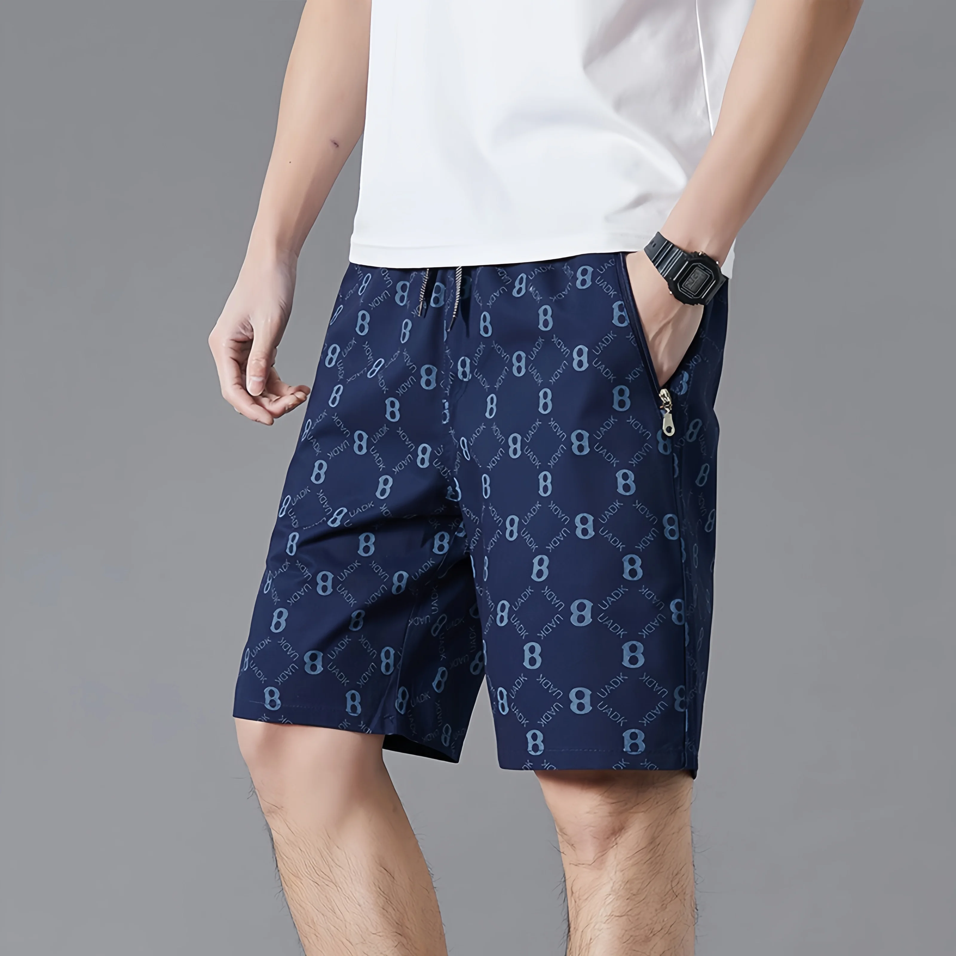 Summer Men’s Casual Shorts Printed Mid Waist Breathable Wrinkle Resistant Casual Shorts
