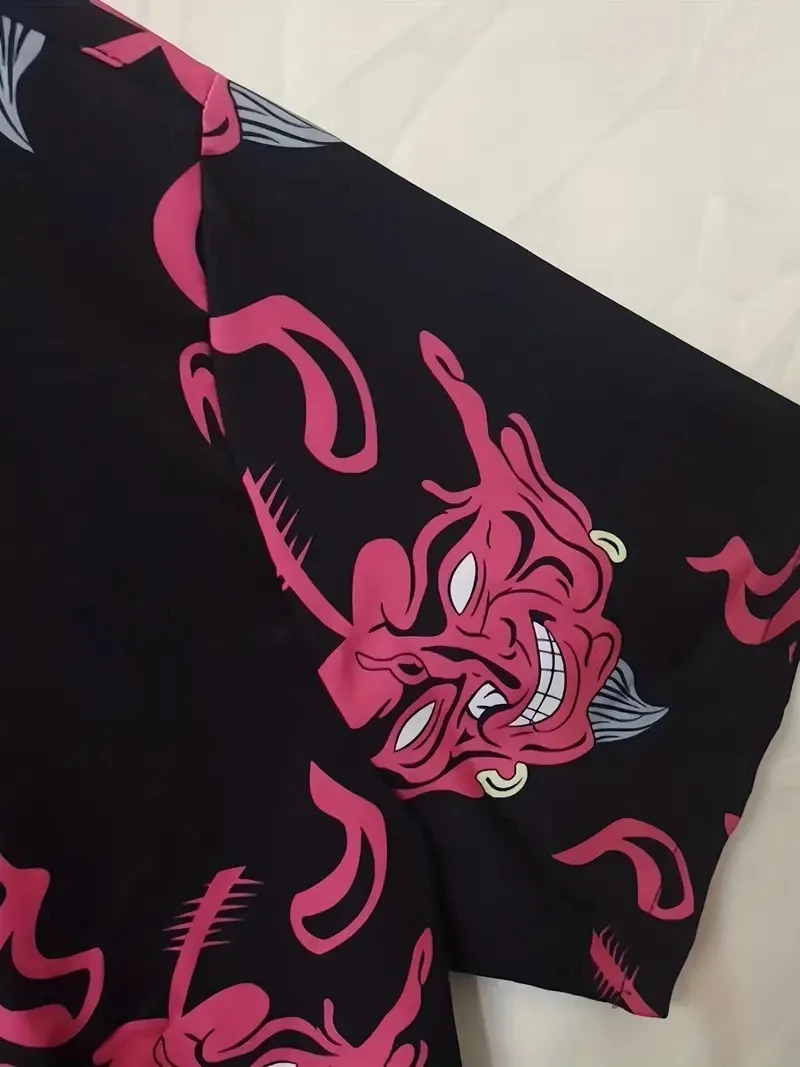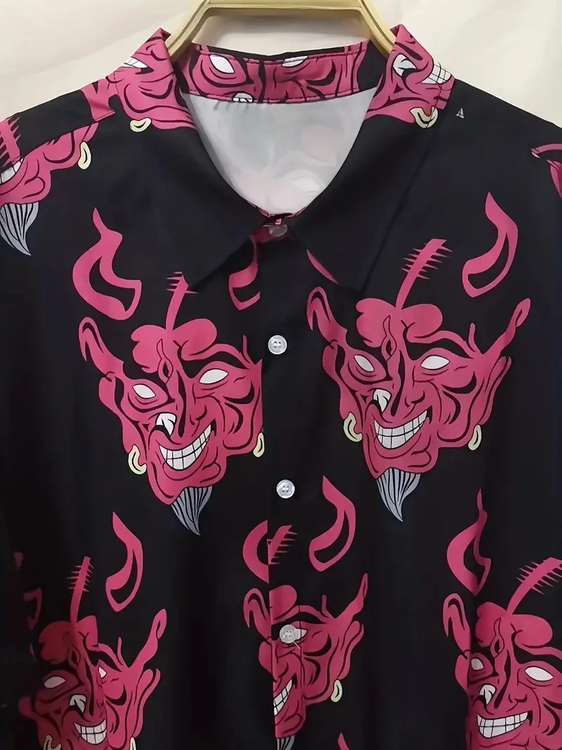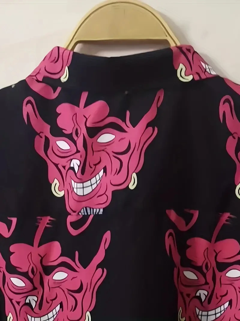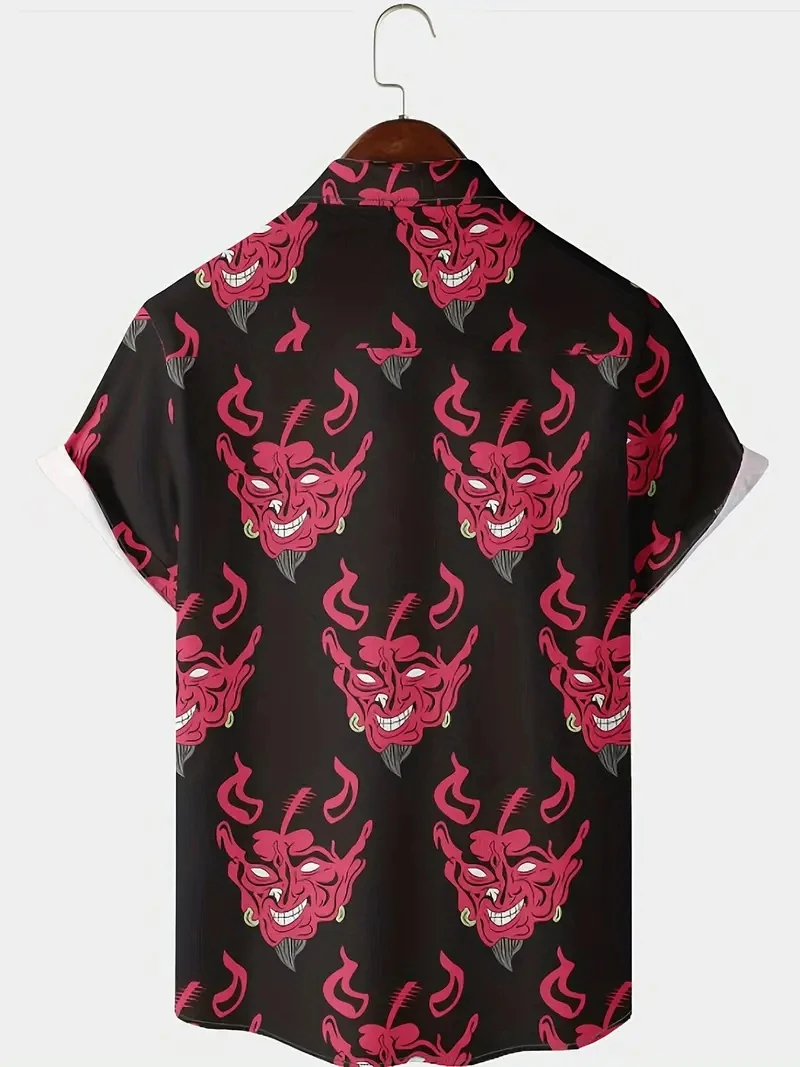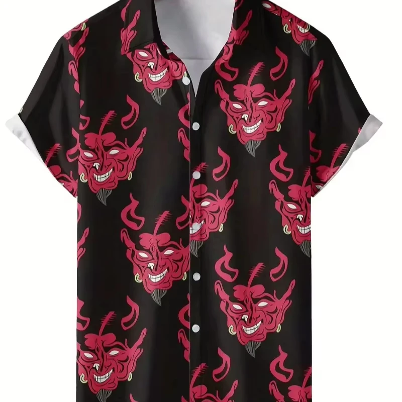 New arrival Men’s Casual Demon Pattern Short Sleeve Shirt for Summer Beach Vacation Breathable Anti-Wrinkle