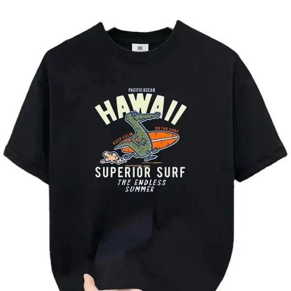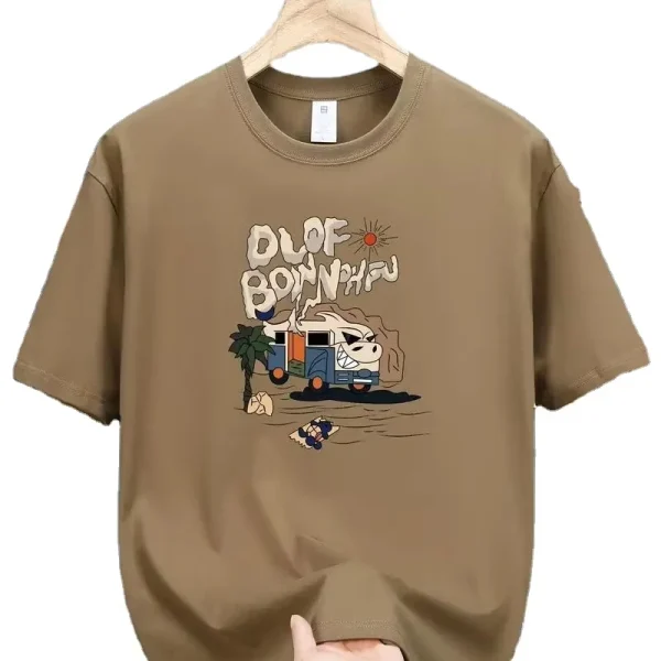 024 Hot Loose Fit Dinosaur Graphic Print Soft Crew Neck Short Sleeve Machine Washable Daily Casual Summer Cotton Men's T-Shirt