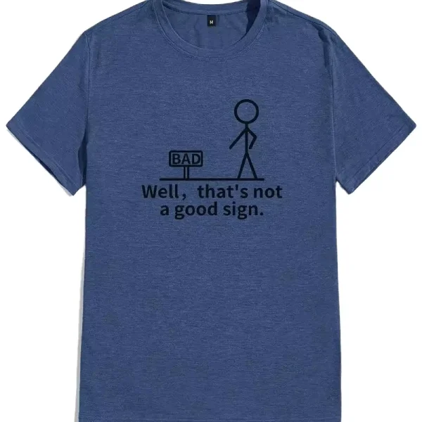 2025 Hot New Men's Casual Street Style round Neck T-Shirt 'Not a Good Sign' Print Stretch Short Sleeve Knitted Summer T-Shirt