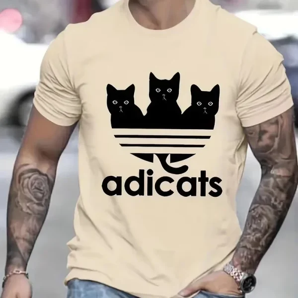 2025 Hot New Men's Cute Cat Letter Print Casual Versatile Short Sleeve Crew Neck Top Formal Summer Knitted Clothing T-Shirt