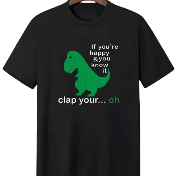 2025 Funny Dinosaur Meme Print for Men Casual Short Sleeve Knitted Top Summer Spring Fall Tops with Gift Options T-shirt