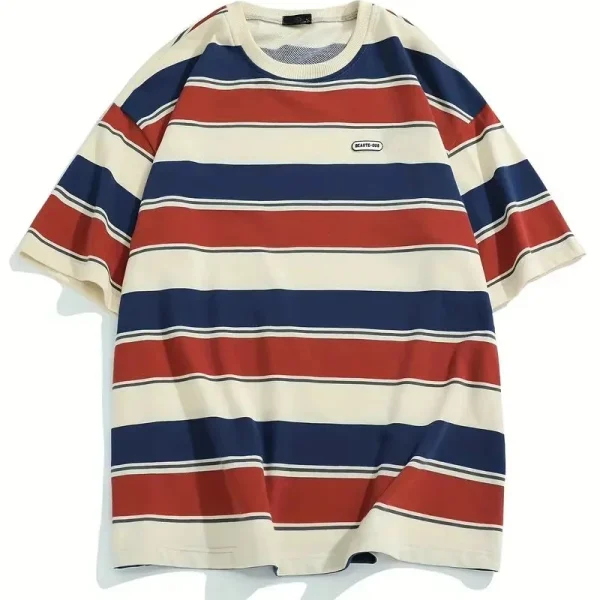 2025 Hot New Men's Classic Striped Cotton Blend Stylish Casual Short Sleeve Crew Neck Design for All-Season Outdoor Wear T-Shirt
