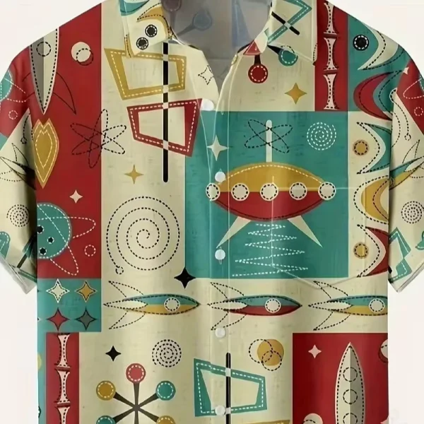 Vintage Geometric Print Men's Short Sleeve Shirt Casual Summer Vacation Tops with Chest Pocket Anti-Shrink Service