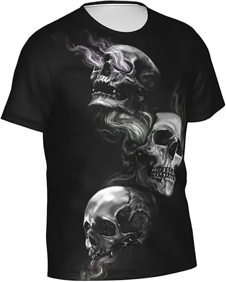 3D Printed Skull Graphic Tshirts for Men Horror Style Short Sleeve V-Neck T-Shirts with Photo Print Knitted Fabric