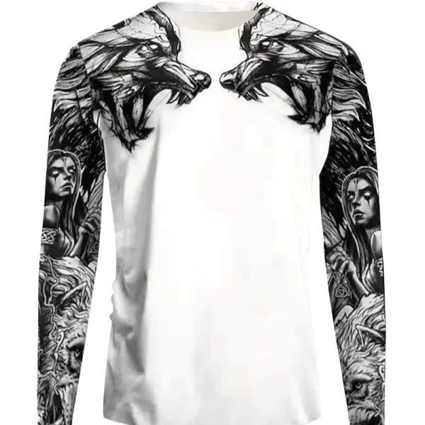 Anime Beast Graphic Print Men's Stylish Long Sleeve Crew Neck T-shirt Casual Spring Fall Perfect Gift for Him